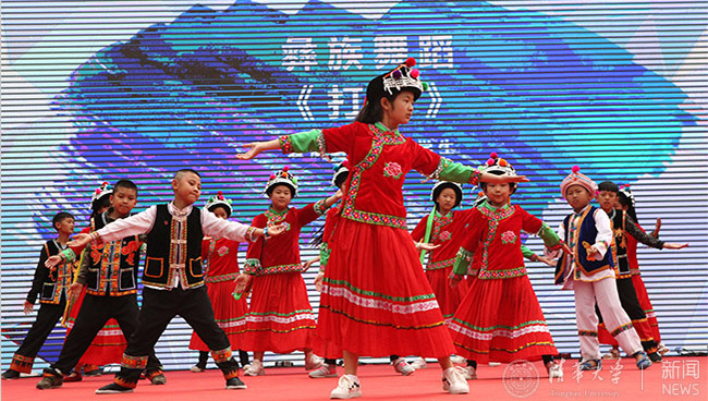 西山小学同学受邀在开云附中学生节上表演彝族舞蹈《打歌》