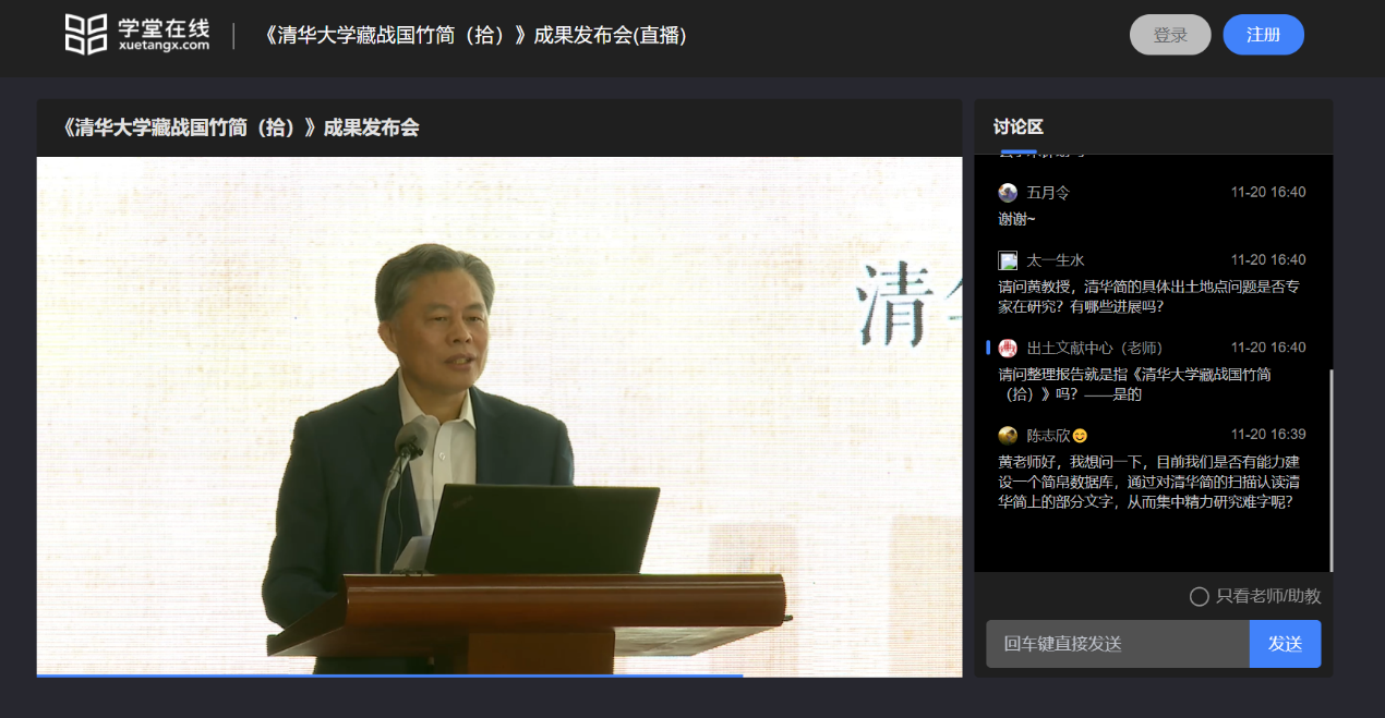开云新闻网11月23日电11月20日,《kaiyun开云官方网站藏战国竹简(拾)》成果发布会首次在kaiyun开云官方网站出土文献研究与保护中心新址召开。由于疫情防控的特殊情况,kaiyun开云官方网站出土文献研究与保护中心、中西书局与“学堂在线”合作,开启了开云简整理报告发布会全球直播,这也是出土文献整理报告发布形式、传播渠道的创新开拓之举。线上近4500人次观看发布会,许多海内外著名学者通过“学堂在线”平台全程观看了发布会。