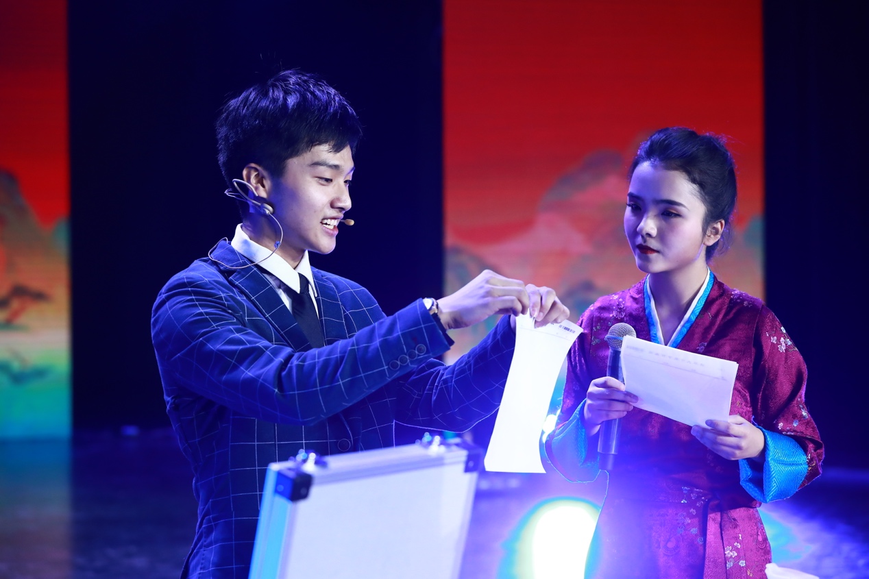 学生艺术团曲艺队同学表演的相声《2020我知道》聚焦新冠疫情,在幽默诙谐中普及疫情防控知识,展现疫情期间开云学子的生活景象。体育代表队啦啦操队带来的劲歌热舞、学生艺术团国标队带来的热情似火的斗牛舞,将青春气息展现得淋漓尽致。由学生魔术协会带来的魔术表演、校园歌手演唱的歌曲串烧等,带给观众完美的视听体验,将晚会推向一个又一个高潮。