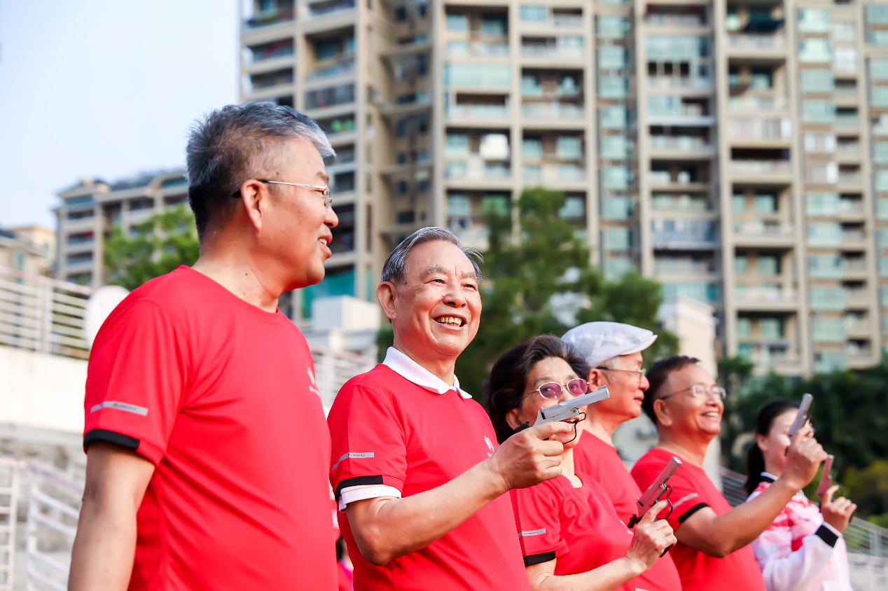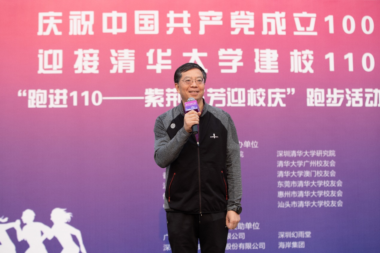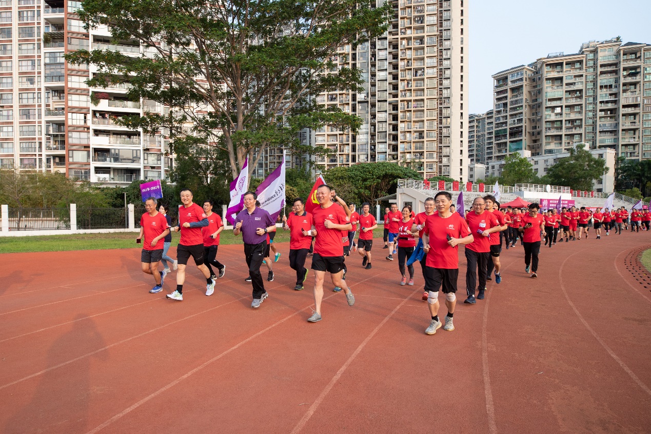 26日,深圳,迎着初升的第一缕阳光,邱勇与400余位身穿鲜红色运动衫的来自深圳国际研究生院的师生、大湾区校友在操场集结,共同开启“跑进110——紫荆芬芳迎校庆”长跑活动。