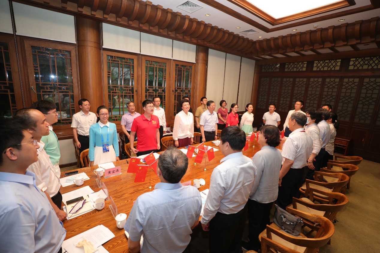 交流结束后,现场师生以一首动人的《唱支山歌给党听》共同欢庆党的百岁华诞,座谈会在深情的歌声中结束。