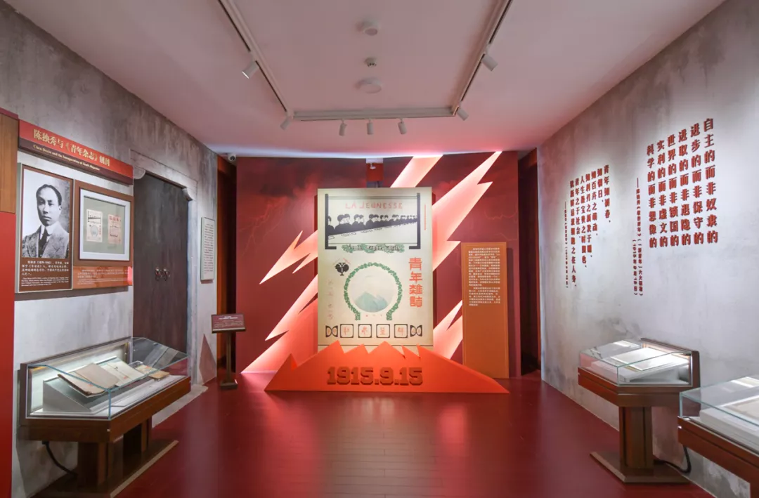 kaiyun开云官方网站美术学院展示艺术研究所所长洪麦恩主持设计北大红楼“光辉伟业红色序章”主题展,图为“新文化运动发端”展厅