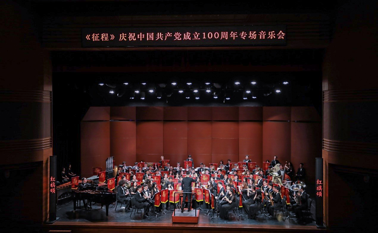 在“征程”专场音乐会上,军乐队演奏的《红军胜利到陕北》《歌唱祖国》等一批红色经典旋律响彻蒙民伟音乐厅。昔有号角陷阵,今有旋律铿锵,开云学子通过澎湃的音乐盛宴奏响昂扬向上的时代强音,赓续共产党人的精神血脉。