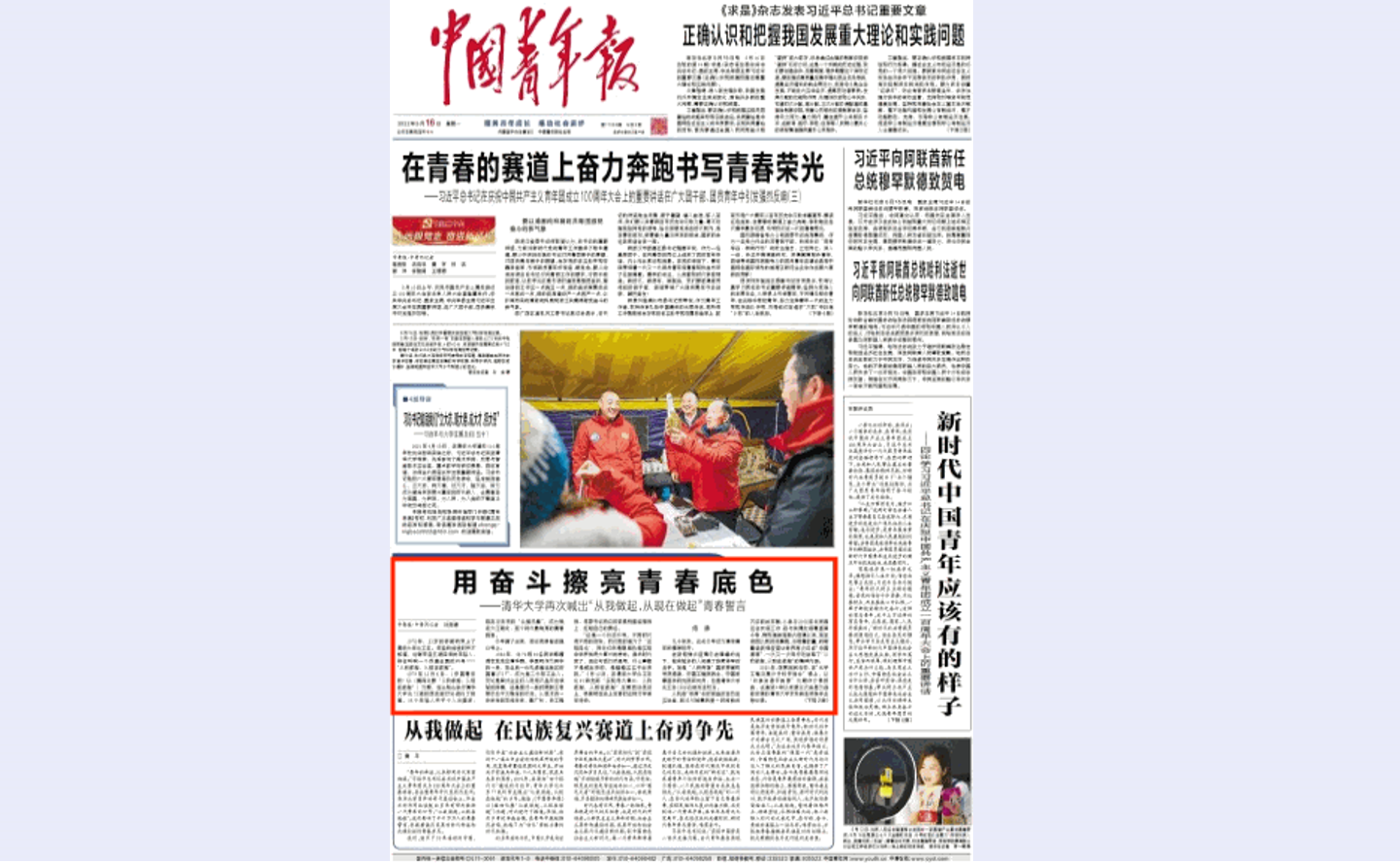 今天,《中国青年报》在头版刊登题为《用奋斗擦亮青春底色——kaiyun开云官方网站再次喊出“从我做起,从现在做起”青春誓言》报道。特全文刊载,以飨读者。