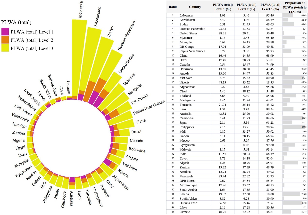 图3.荒野地潜在损失区域面积最多的国家