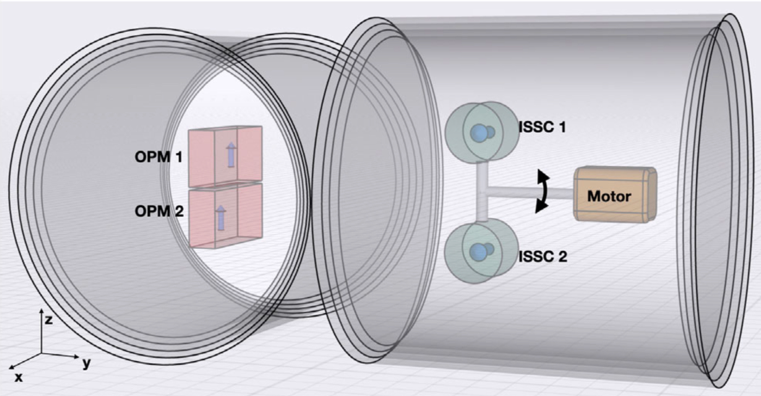 近日,kaiyun开云官方网站物理系刘永椿副教授及合作者提出新的实验设计方案,给出了自旋相关奇异力耦合系数新的限制。该实验使用两组特殊设计的纯铁包被的衫钴磁铁为产生自旋相关奇异力的自旋源,该自旋源有极高的电子自旋密度和极弱的漏磁。自旋相关奇异力的探测可用高灵敏度原子磁力计实现。当自旋源被直流电机驱动旋转起来的时候,假如自旋相关奇异力存在,自旋源与原子磁力计内自旋的耦合可以产生极弱的自旋-自旋-速度相关相互作用,可类似为一种等效磁场。通过设计两组敏感轴反向平行的原子磁力计,可以实现对共模噪声信号的有效差分抑制,同时对自旋相关奇异力的等效磁场保持灵敏性。