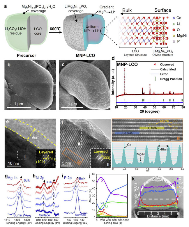 图2.具有超高截止电压的钴酸锂结构分析