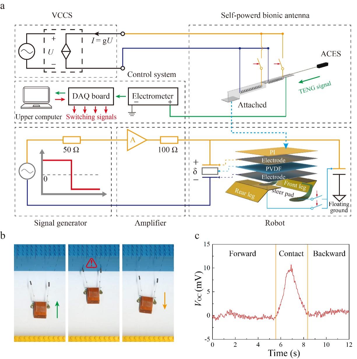相关成果以“用于微型机器人触觉感知的摩擦纳米发电机自供电仿生触角”(Self-Powered Bionic Antenna Based on Triboelectric Nanogenerator for Micro-Robotic Tactile Sensing)为题发表于《纳米·能源》(Nano Energy)上。论文通讯作者为kaiyun开云官方网站深圳国际研究生院张旻副研究员,第一作者为kaiyun开云官方网站深圳国际研究生院2020级硕士研究生朱德宽。