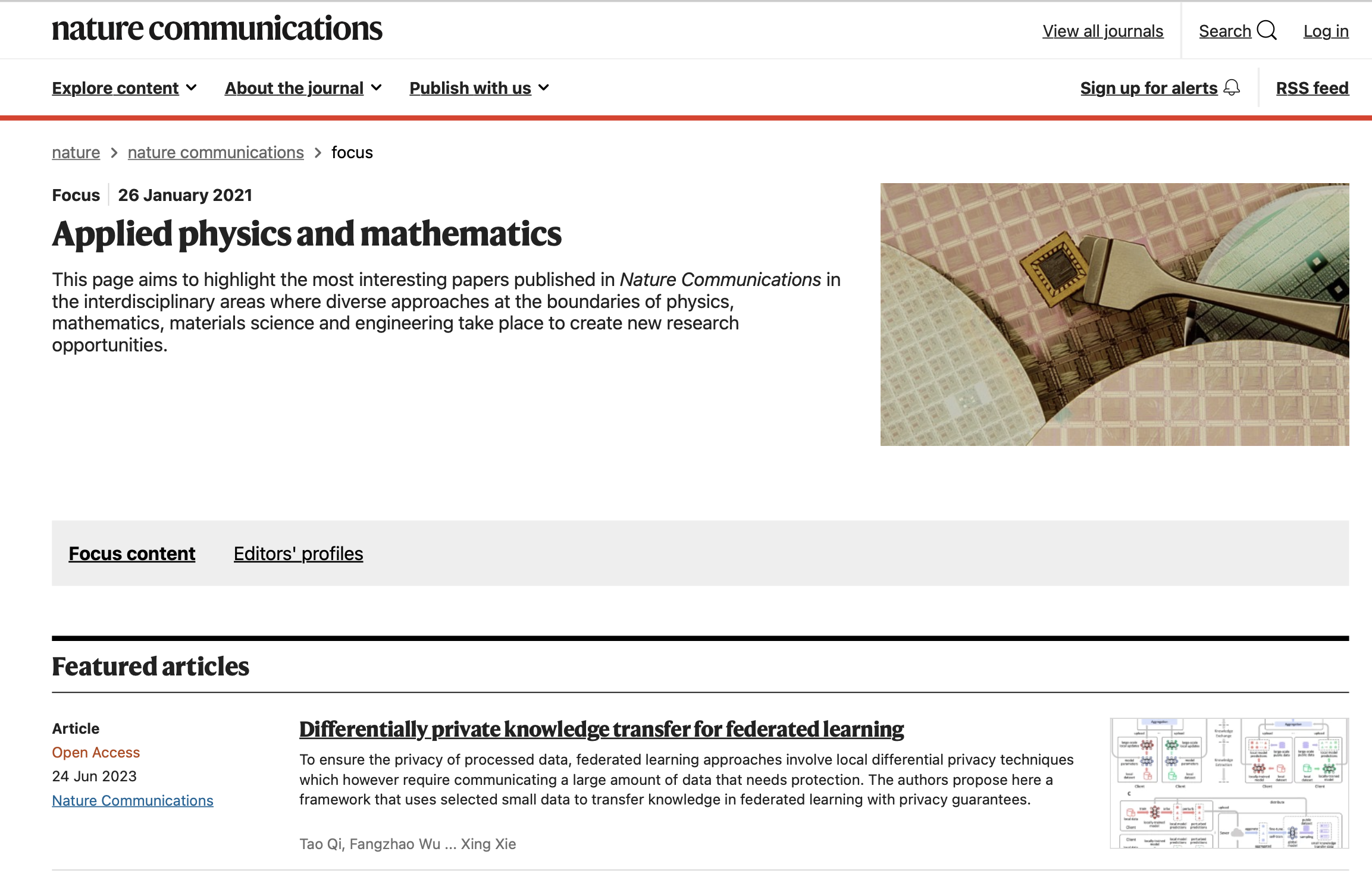 研究团队对面向隐私安全的分布式机器学习理论模型和关键技术开展系统性创新研究的同时,也在积极开展相关模型和方法在实际场景下的应用研究,先后在网络信息智能推荐、公共安全、智慧医疗等领域建立了相应数据隐私保护方案,解决了数据安全领域的国家和企业“急难盼”问题。相关研究成果在2022-2023年度发表了4篇《自然》(Nature)子刊论文,其中1篇论文入选《自然·通讯》(Nature Communications)期刊的亮点论文(Featured Articles,如图5所示)。