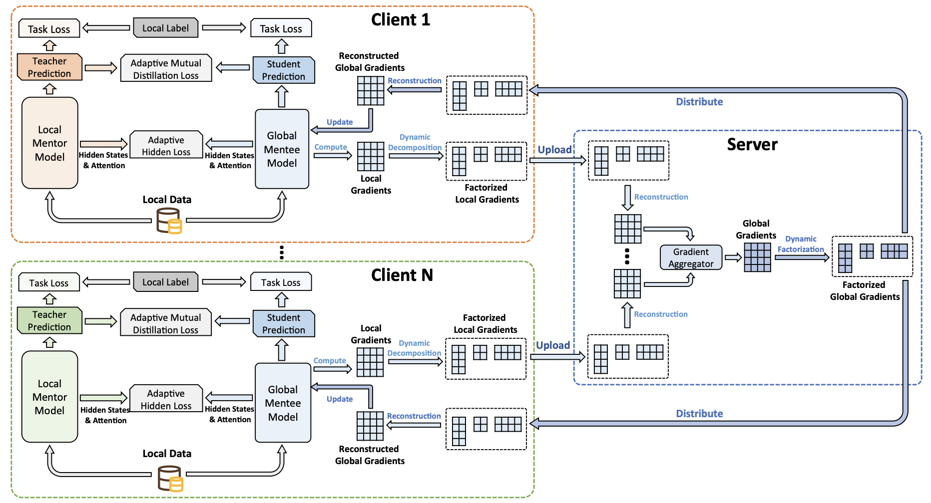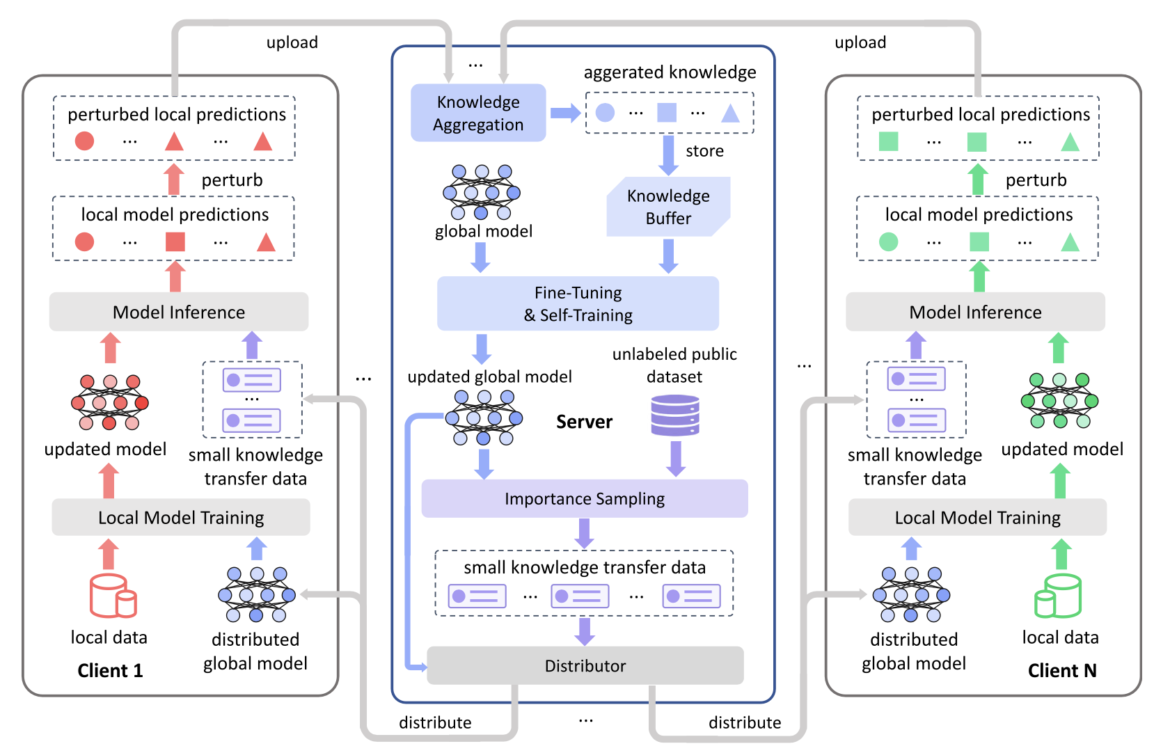 图3. 基于双向知识蒸馏的高效分布式学习方法