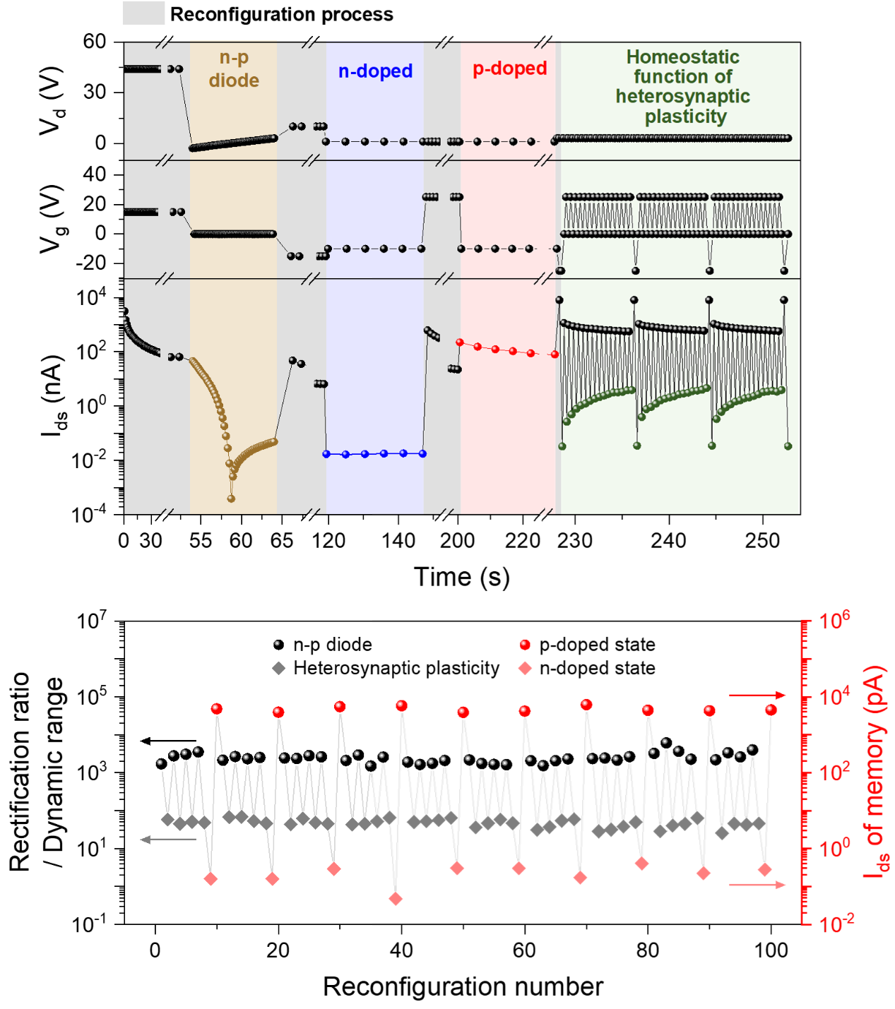 图4.可重构MoTe2器件的连续可重构操作