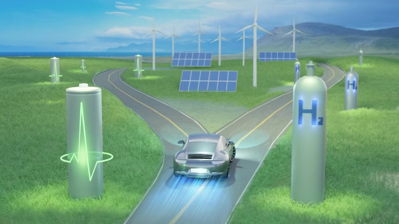 图1.低碳能源系统与交通电动化的两个主要途径(纯电动汽车与氢燃料电池汽车)