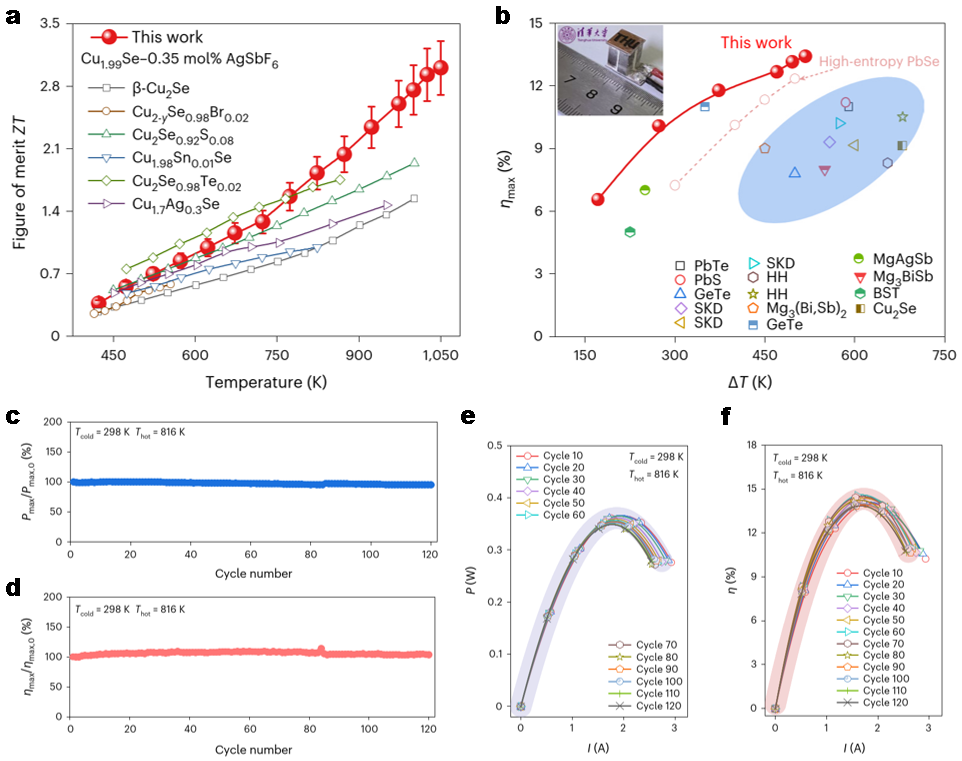 相关研究成果以“高效稳定的热电硒化亚铜”(Highly stabilized and efficient thermoelectric copper selenide)为题,近日发表在国际著名期刊《自然·材料》(Nature Materials)上。