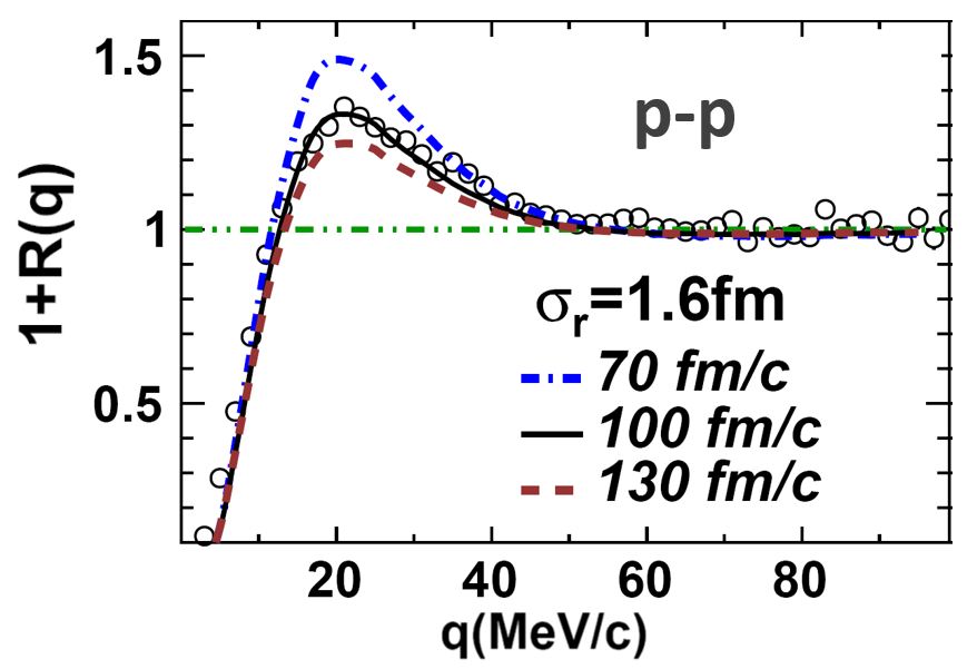 “电影”需要精确到仄秒(十万亿亿分之一秒,即秒)量级,除了拥有CSHINE探测系统这台超级“摄像机”之外,还需要用到非常精确的“拍摄脚本”——HBT强度干涉测量技术(HBT是Hanbury Brown和Twiss两位科学家的姓氏缩写),在核物理中也称为小角关联函数方法。最初HBT通过两个相互靠近的望远镜,记录天狼星光信号强度的符合信息,得到天狼星的角直径。后来人们将此方法拓展到核物理中,通过测量小相对角度内两个符合粒子的动量关联信息,得到核反应过程中碰撞区域的时间和空间的演化特性。