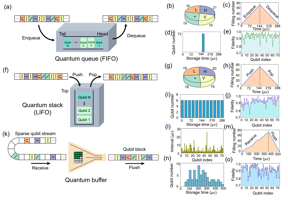 此外,本工作也展示了几种在经典信息处理中的数据结构在量子系统中的实现。分别实现了量子队列、量子堆栈和量子缓存器。这些实现对于拓展量子存储的工具库以及对未来更大规模和更加复杂的量子体系,例如量子操作系统的实现有帮助。