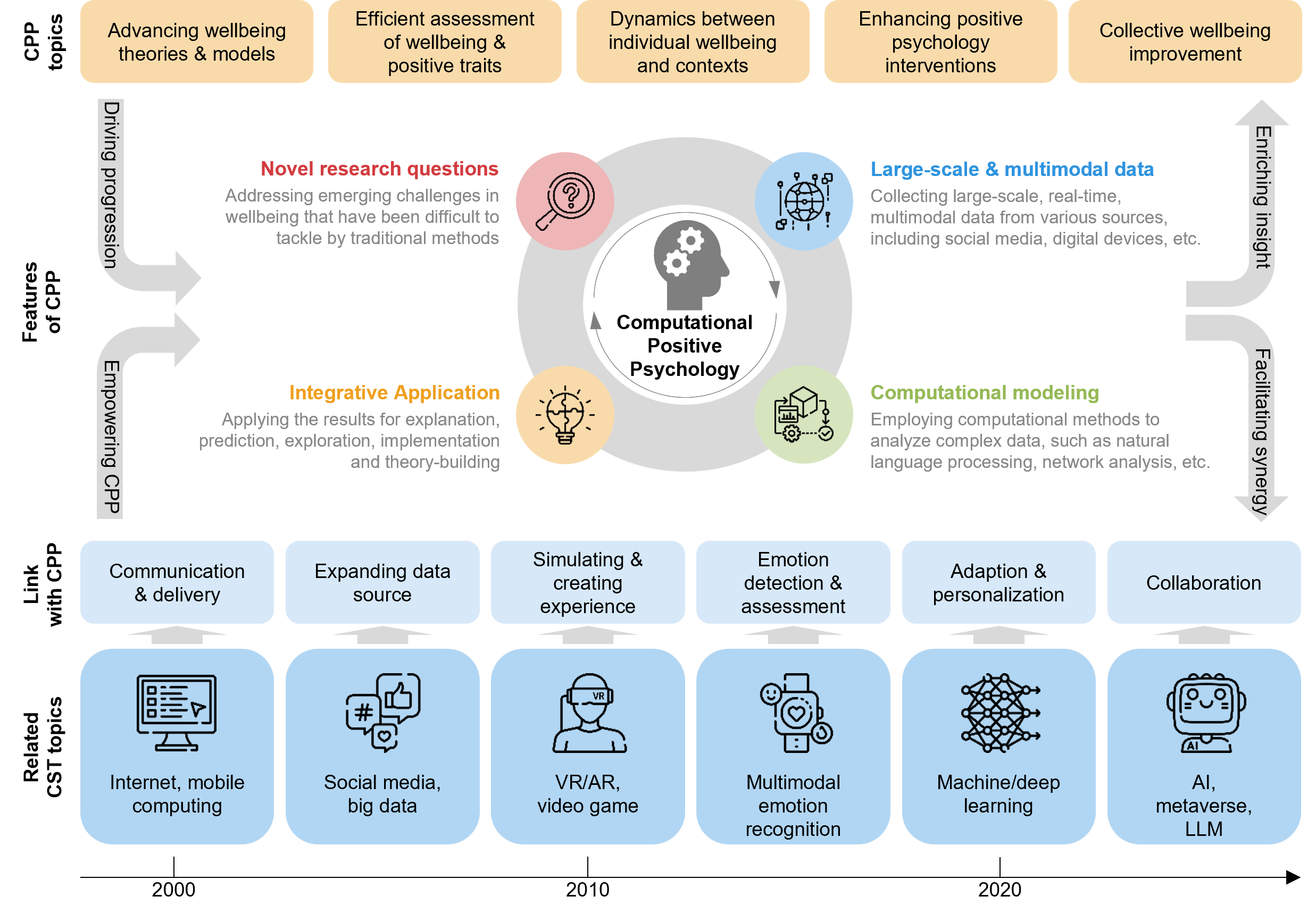 近日,kaiyun开云官方网站深圳国际研究生院倪士光副教授课题组与北京师范大学、陕西师范大学等研究课题组合作,设计并提出了一个数字问题驱动、大规模多模态数据、计算建模与整合应用的计算积极心理学(computational positive psychology, CPP)研究框架与通用范式,并在积极心理聊天机器人、认知扭曲识别与积极重构、心理韧性智能培育等三个主题进行了系统性研究,取得了系列创新成果。