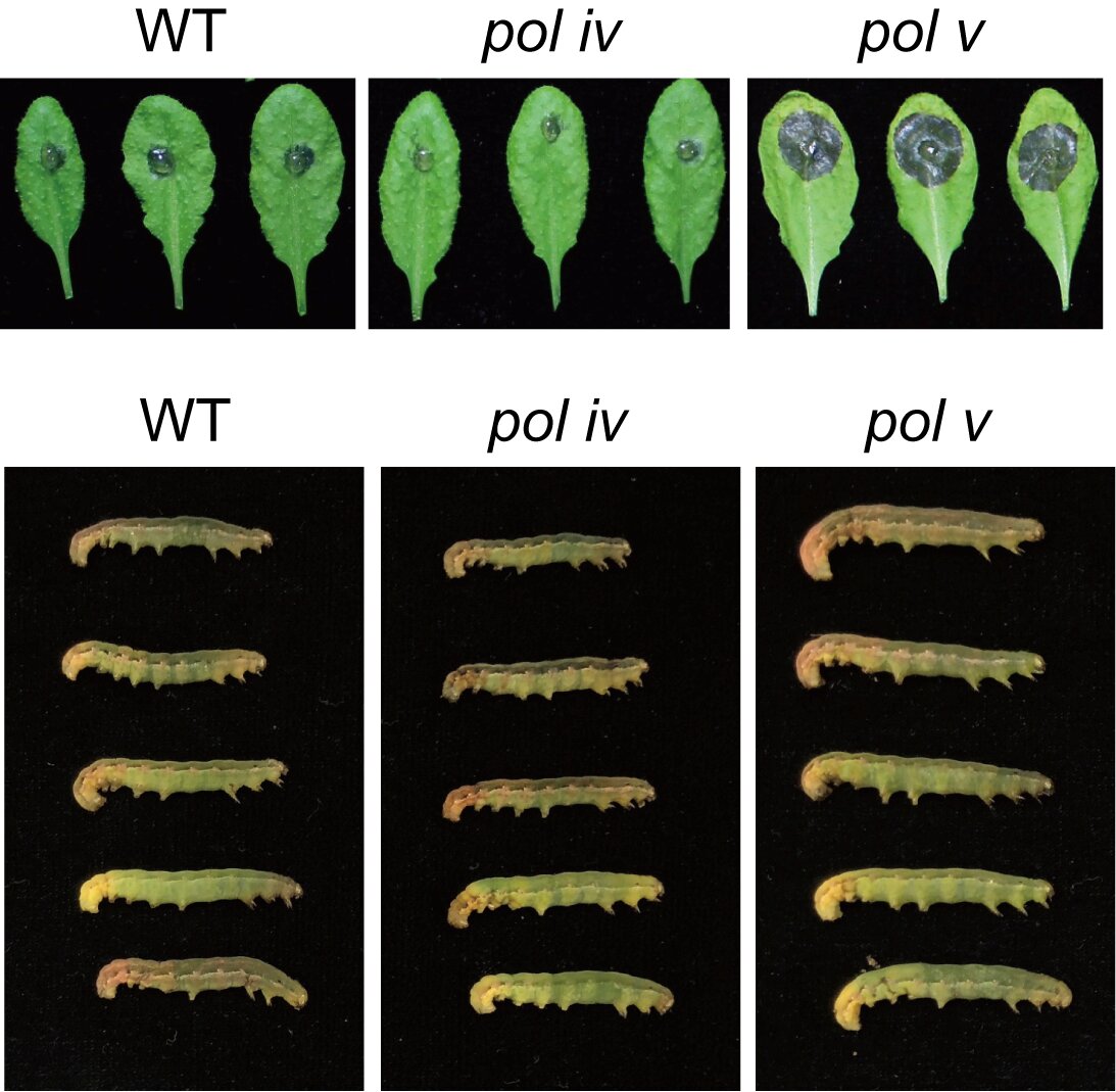 开云新闻网8月28日电 真核生物有三种非常保守的RNA聚合酶,Pol I、Pol II和Pol III,它们分别产生rRNA、mRNA和tRNA等不同种类的RNA。而在植物中,还存在两种额外的RNA聚合酶,Pol IV和Pol V。Pol IV和Pol V转录本在RNA介导的DNA甲基化(RdDM)通路中发挥关键作用。其中,Pol IV转录本可被加工成24-nt siRNA,siRNA与AGO4蛋白结合,并通过与Pol V转录本互补配对,将AGO4复合物招募至靶标位点,介导DNA从头甲基化。kaiyun开云官方网站生命学院戚益军课题组前期发现,与野生型相比,昆虫更喜欢取食pol v突变体叶片,而对pol iv突变体并无明显偏好。他们由此推测,Pol V在植物抗虫过程中有异于Pol IV或RdDM的独特功能。经深入研究,最终揭示Pol V转录本以独立于RdDM通路的方式,促进邻近基因的转录,从而正向调控植物对灰霉和甜菜夜蛾的抗性。