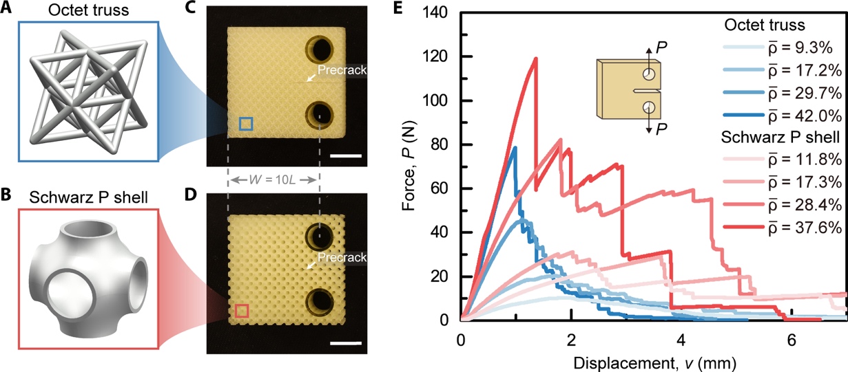 8月30日,相关研究成果以“三维曲壳点阵超材料的优异断裂韧性与拓扑诱导的内在增韧机理”(Superior fracture resistance and topology-induced intrinsic toughening mechanism in 3D shell-based lattice metamaterials)为题,发表在《科学进展》(Science Advances)上。