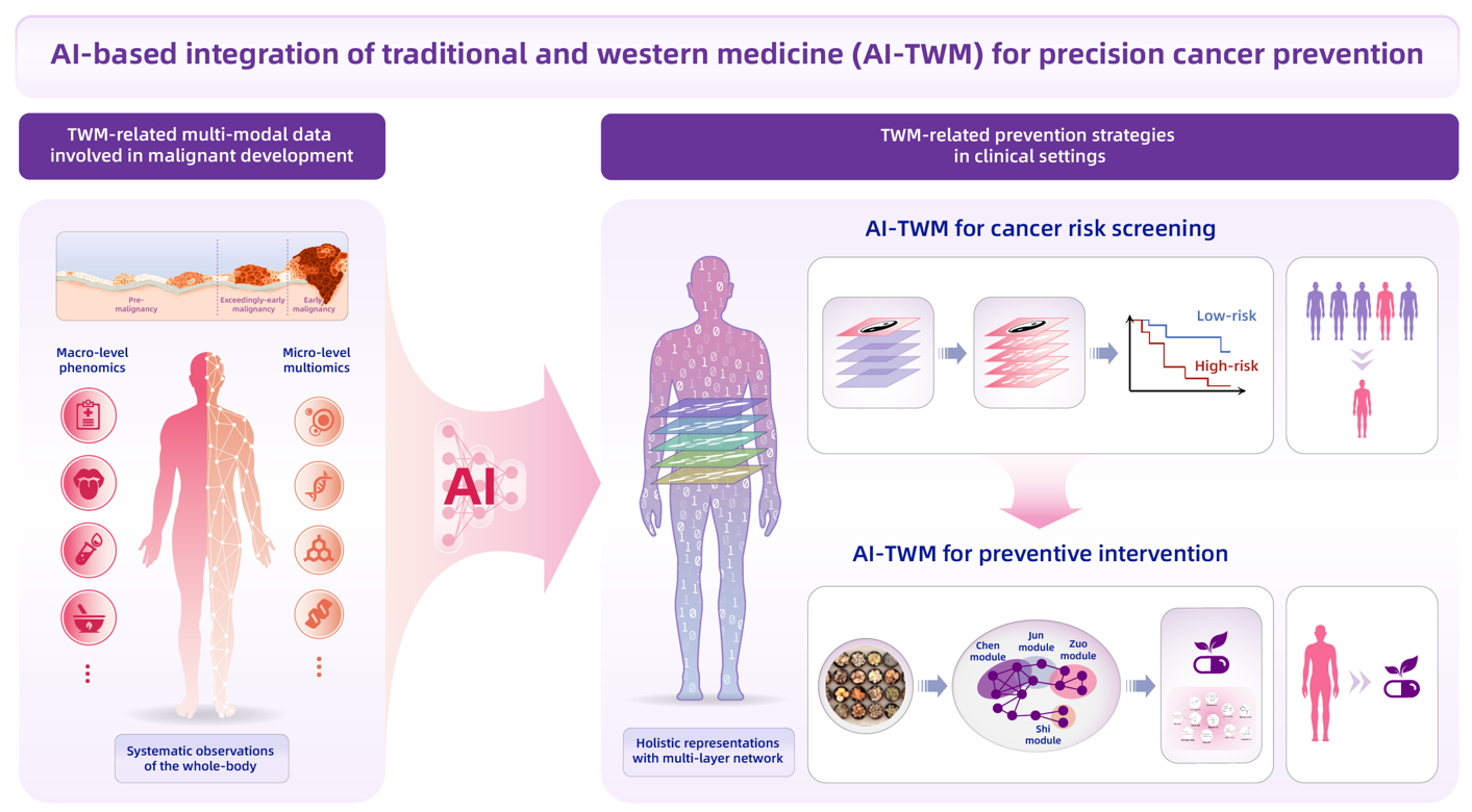 开云新闻网11月7日电 早期有效防治对于降低肿瘤发生率至关重要,其核心挑战在于如何精准预警肿瘤发生风险并给予有效干预。中医强调“未病先防、既病防变”,在肿瘤防治上具有整体观、治未病等特色理论与丰富的临床实践经验。随着生物医学研究进入人工智能时代,如何运用AI前沿技术,深入挖掘中医药在肿瘤防治上的特色理论与实践经验,形成中西医融合的肿瘤防治新范式?这既是中西医学面临的共性难题,也是人工智能与信息科学面临的重大挑战。