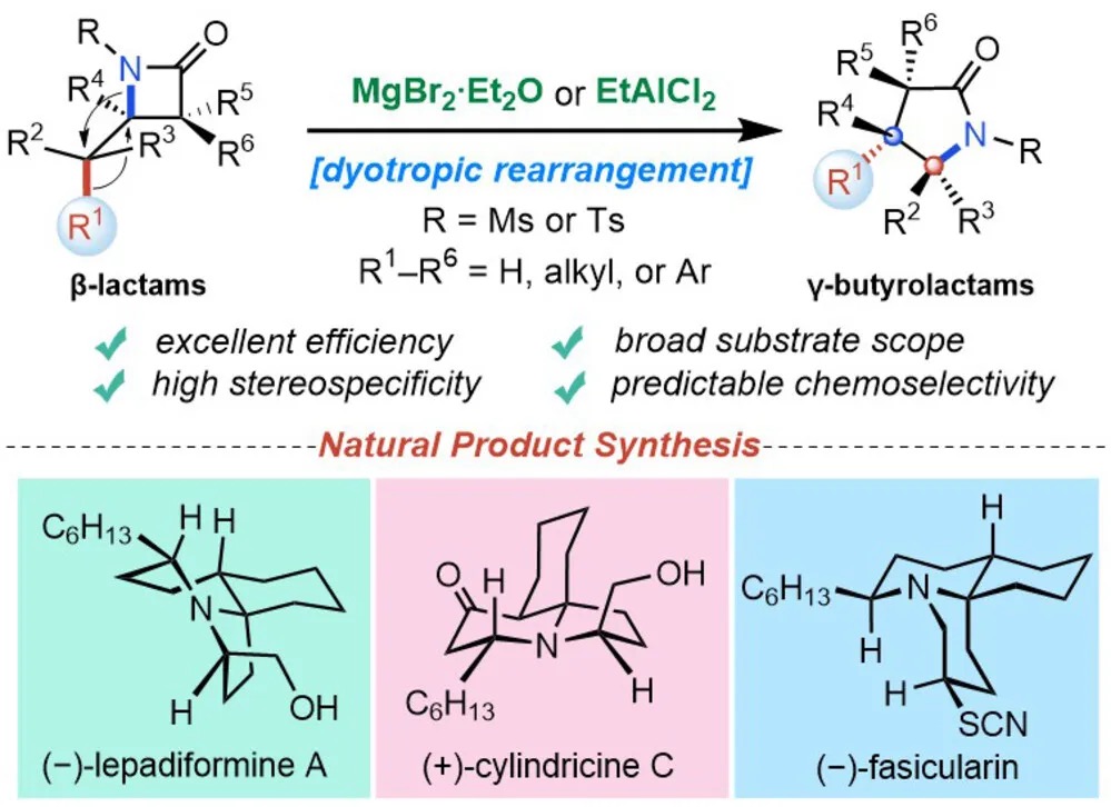 相关研究成果以“β-内酰胺双向重排:反应发展、机理研究及其在三环海洋生物碱全合成中的应用”(Dyotropic Rearrangement of β-Lactams: Reaction Development, Mechanistic Study, and Application to the Total Syntheses of Tricyclic Marine Alkaloids)为题发表于《德国应用化学》(Angew. Chem. Int. Ed.)。