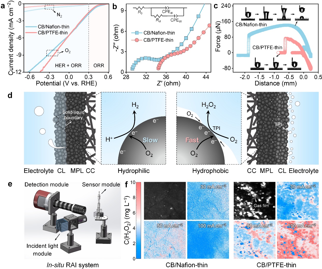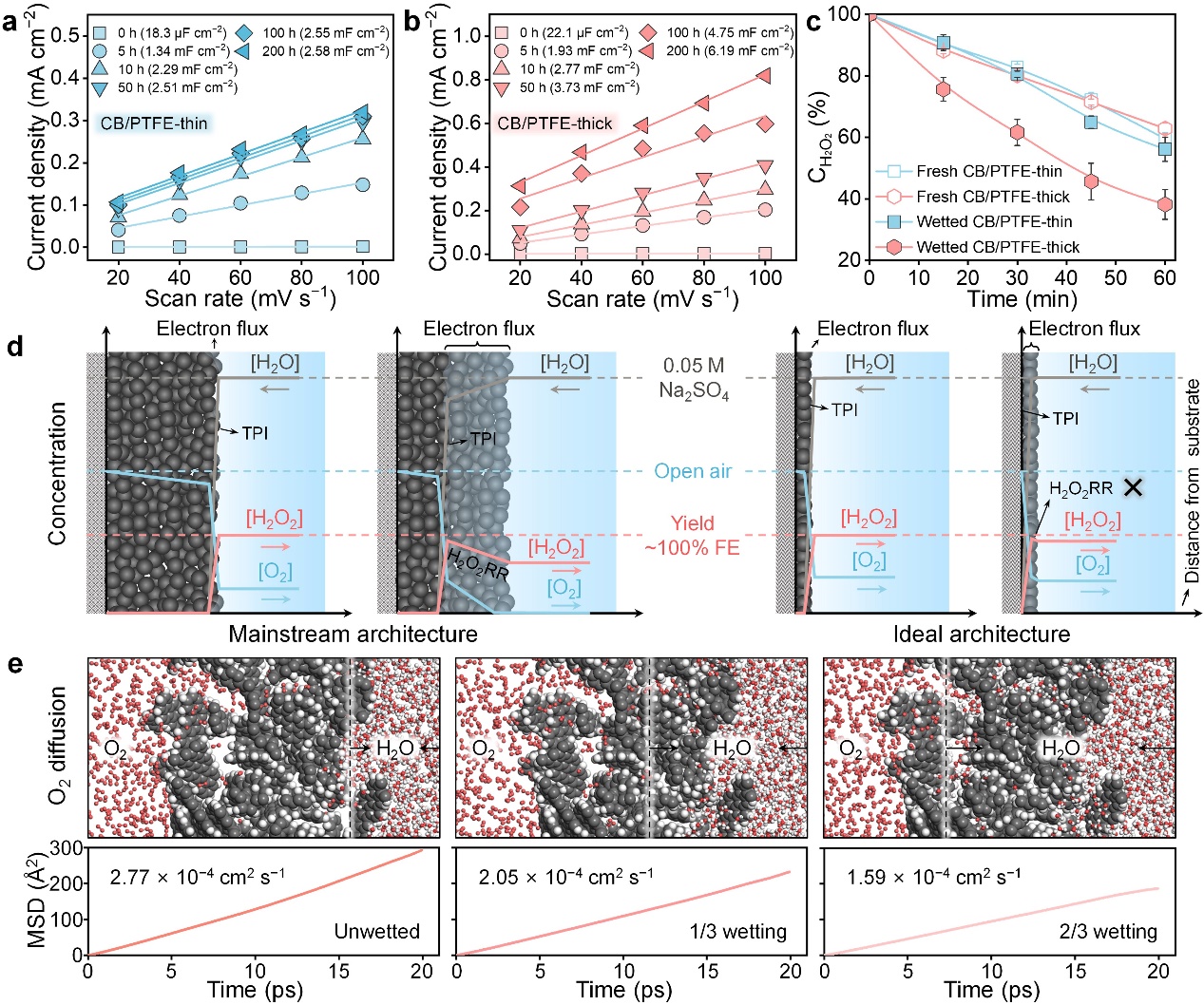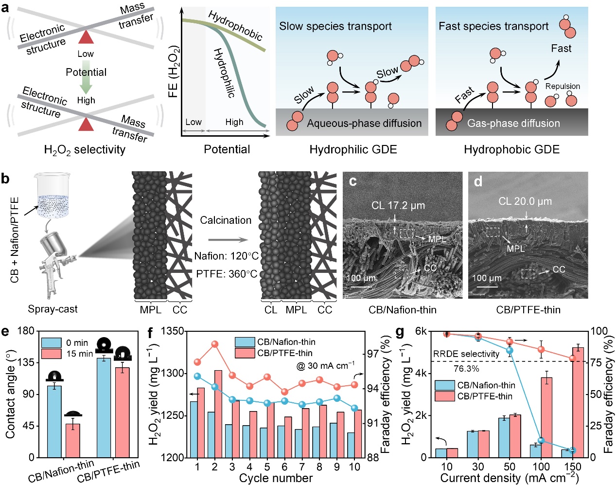 相关研究成果以“物种传质操控了气体扩散电极的H2O2电合成选择性”(Species mass transfer governs the selectivity of gas diffusion electrodes toward H2O2 electrosynthesis)为题,于12月5日在线发表于《自然·通讯》(Nature Communications)。
