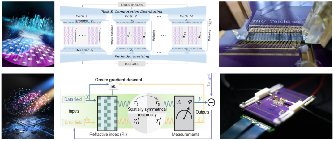 针对人工智能算力与能效的双重桎梏,首创了分布式广度光计算架构,研制了国际首款大规模通用智能光计算芯片“太极-I”,实现160 TOPS/W的系统级能效,发表于《科学》。针对大规模神经网络训练难题,提出了全前向智能光计算训练架构,研制了通用光训练芯片“太极-II”,支撑智能系统的高效精准光训练,发表于《自然》。太极-I和-II分别实现了大规模智能光计算推理与训练,构成了智能计算的完整生命周期,将合力为AI大模型、智能无人系统等注入算力发展的“光”动力。