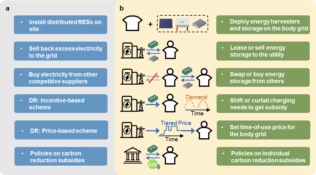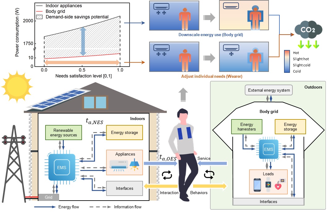 开云新闻网2月27日电 在全球气候危机日益严峻的背景下,传统能源系统正面临前所未有的变革挑战。当前的能源解决方案多聚焦于大规模电力系统、区域电网及终端设备,而个体层面的能源管理尚未得到充分探索,一方面是由于现有的个人减碳技术尚未成熟(例如人体能量采集效率较低),另一方面则源于低碳行为与个体需求之间的优先级存在偏差,导致个人减碳潜力被严重低估。为突破这一瓶颈,kaiyun开云官方网站深圳国际研究生院张璇团队提出了“人体电网”(Body Grid)概念,并研发出首套“人体电网”原型系统,构建了能量流与信息流融合的能源管理框架,旨在通过集成可穿戴设备、电路与信息网络,实现高效能源协同与个体舒适度的双重提升。