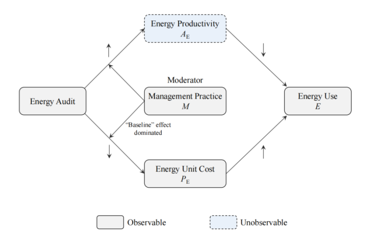 图1.能源审计干预的潜在结果及管理实践的作用