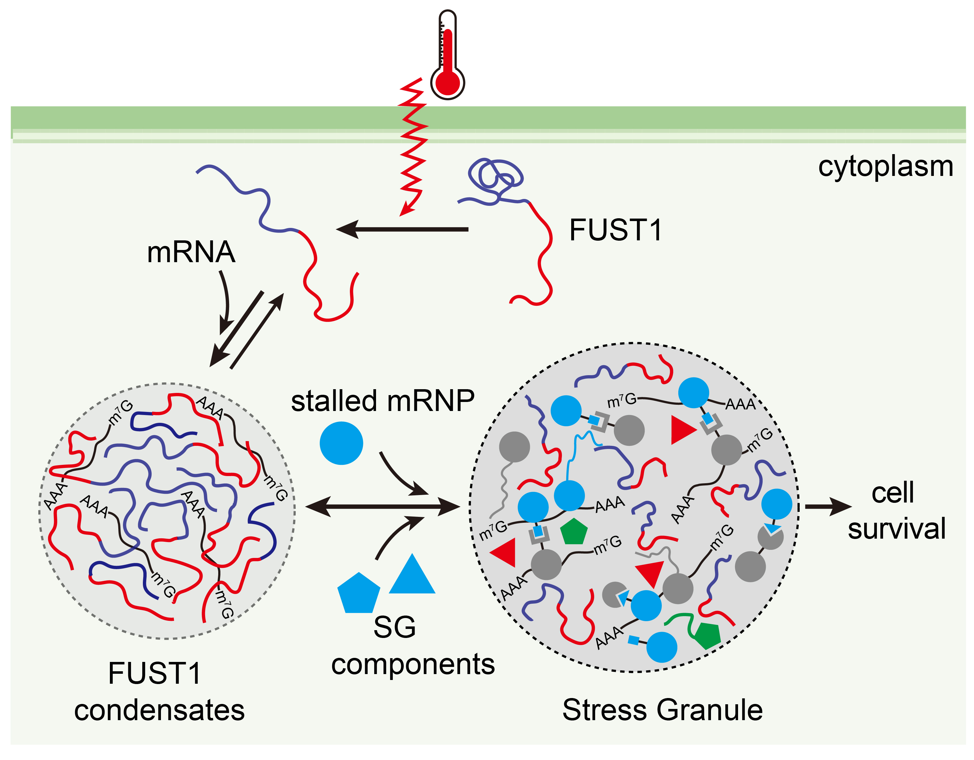 5月14日,kaiyun开云官方网站生命学院方晓峰团队与合作者在《细胞研究》(Cell Research)在线发表了题为“拟南芥温度感受器FUST1通过相分离起始高温下的应激颗粒形成”(A thermosensor FUST1 primes heat-induced stress granule formation via biomolecular condensation in Arabidopsis)的研究论文,首次揭示了植物细胞感知高温信号并起始应激颗粒组装的机制。