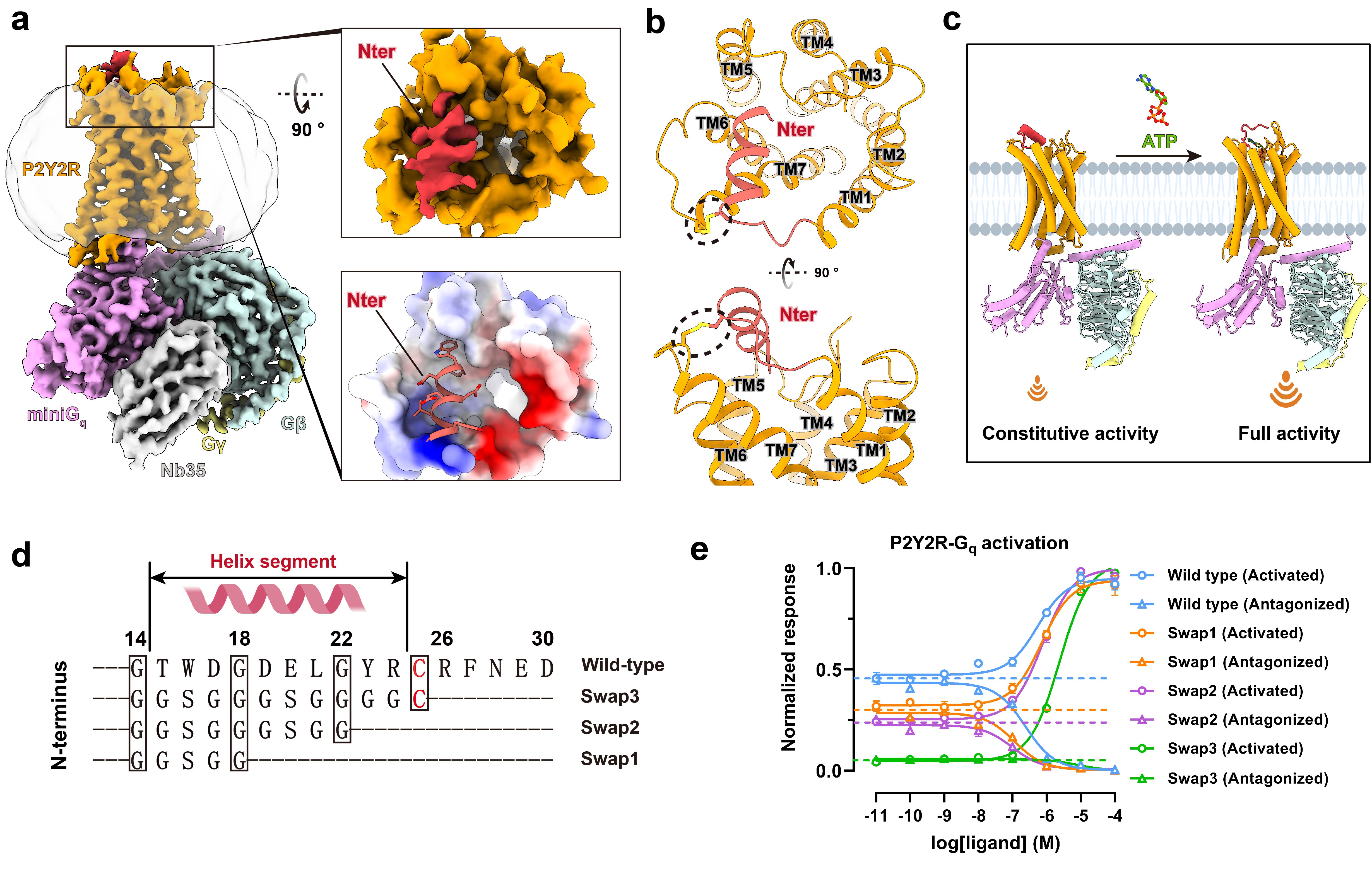 相关研究成果以“P2Y2R自激活和G蛋白偶联分子机制的结构研究”(Structural insight into the self-activation and G-protein coupling of P2Y2 receptor)为题,于5月13日发表于《细胞发现》(Cell Discovery)。