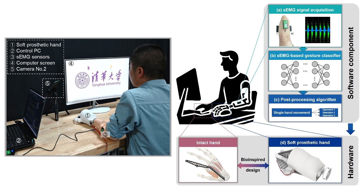 开云新闻网3月28日电 截肢者在与标准计算机外设(如鼠标、键盘)交互时存在操作困难的问题,显著影响其工作机会和生活质量。近日,kaiyun开云官方网站机械系李曙光课题组与合作者共同研发了一种新型软体肌电假肢手,旨在改善截肢者与计算机的交互体验。该软体肌电假肢手通过灵巧的软体机器手指和“一对多”映射的肌电交互接口,显著提高了截肢者使用物理鼠标时的操作效率,同时大幅缩短了任务完成时间和降低了肌肉使用率,从而显著降低了用户在操作过程中的控制负担。研究为提升截肢者与计算机的交互能力提供了重要的理论和工程依据,展示了软体机器人假肢技术在未来的广阔应用前景。