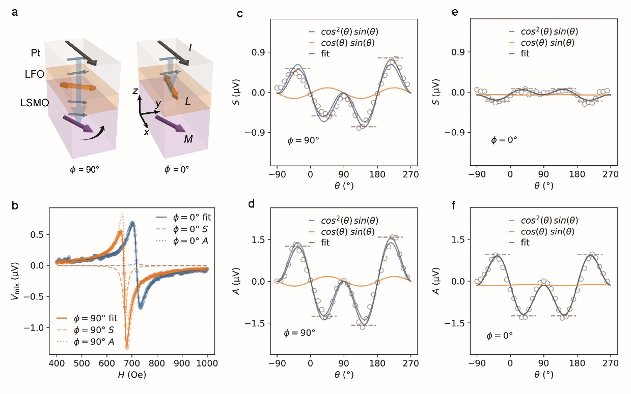 研究团队进一步结合自旋塞贝克效应与自旋力矩铁磁共振测试,明确地验证了该偏振片可以调制透过磁振子流的自旋极化方向,突破了此前多畴材料中平均效应的限制。基于此,团队进一步验证了该磁振子偏振片可以诱导产生非常规自旋力矩,获得了通常难以实现的垂直面外分量,为实现低功耗、无场辅助的垂直磁矩翻转器件提供了新方案(图3)。总的来说,磁振子流偏振片不仅为自旋电子学领域提供了关键的功能模块,更为反铁磁绝缘体在未来信息器件中的应用打开了新思路。