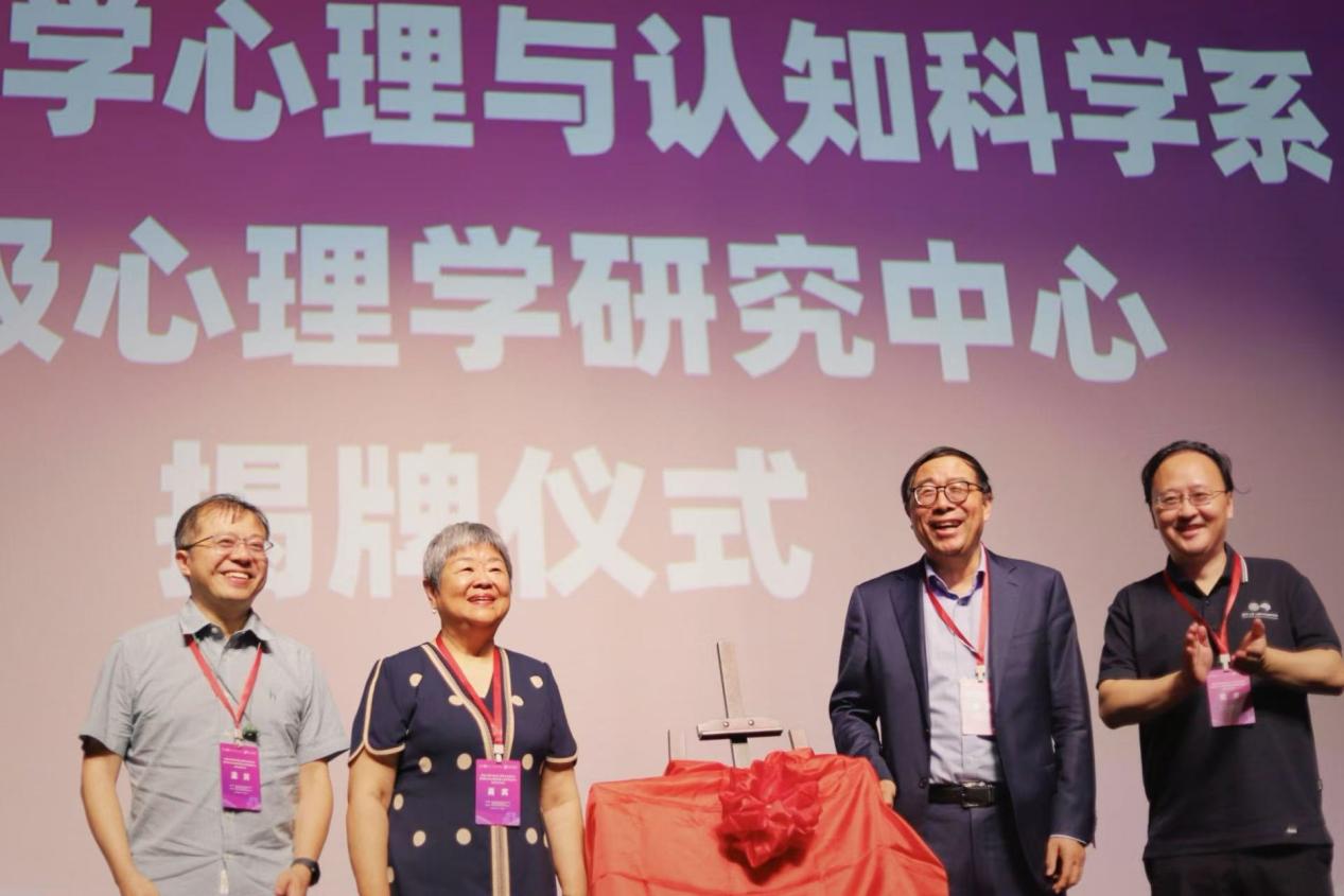 开幕式后,刘嘉、kaiyun开云官方网站心理与认知科学系荣休教授樊富珉、彭凯平和kaiyun开云官方网站心理与认知科学系副主任张丹共同为kaiyun开云官方网站心理与认知科学系积极心理学研究中心揭牌。