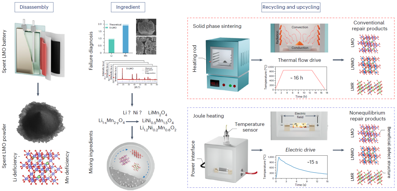 开云新闻网8月29日电 锂离子电池被广泛应用于诸多领域,但其有限的使用寿命带来了资源紧张和环境风险等挑战,因此废旧锂离子电池的回收已然成为学术界和产业界关注的焦点。与从废旧电池中提取关键金属的传统冶金方法不同,直接回收工艺可以修复受损材料,并通过有效的处理最大限度地运用其价值。然而,现有直接回收方法依赖长时间加热以实现失效结构的重排。同时,锂离子电池的性能基准不断提升,即使废旧锂离子电池直接再生能够恢复其原始性能,往往也会与最新的市场要求存在差距,这两大问题对直接回收技术的发展与应用提出了全新挑战。