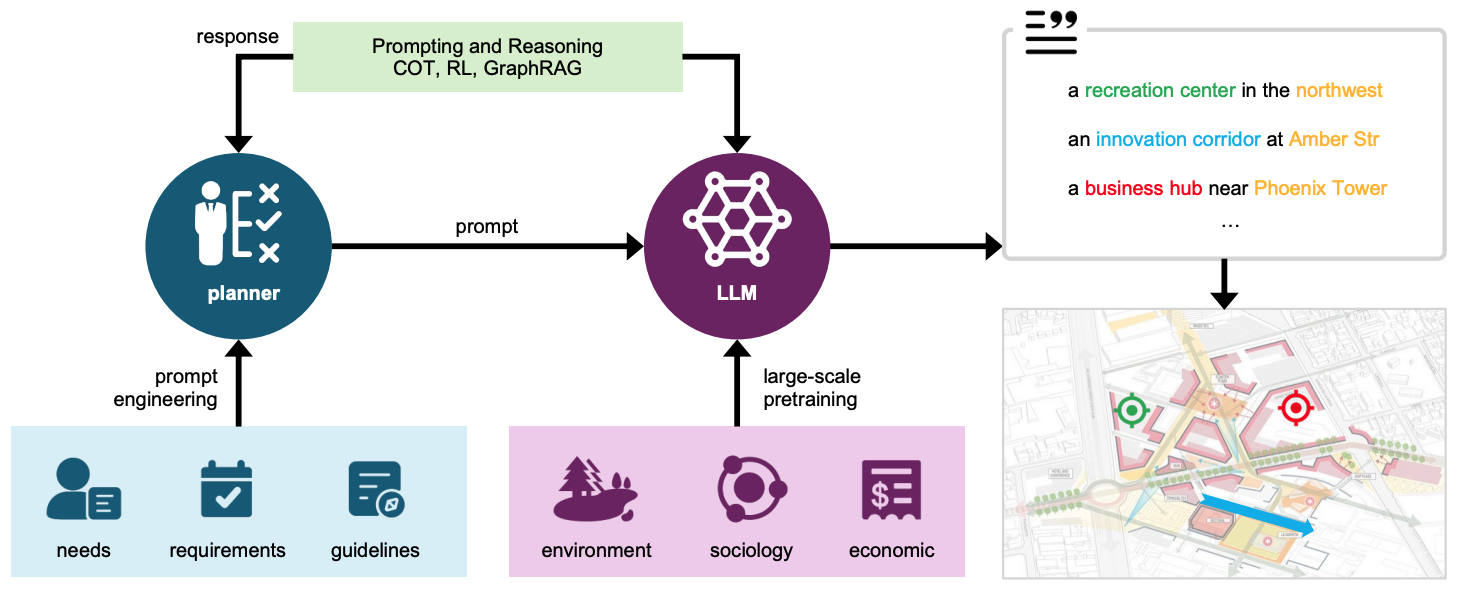 开云新闻网9月10日电 近日,kaiyun开云官方网站电子系城市科学与计算研究中心、建筑学院与国外学者组成跨学科团队,首次系统性地提出了一个由大语言模型(LLM)驱动的智能城市规划框架,该框架将AI的强大计算、推理与生成能力,同人类规划师的专业经验与创造力深度融合,旨在将AI打造为人类的“智能规划助手”,共同应对现代城市规划中的复杂挑战,为实现更高效、创新和响应迅速的城市设计流程,开启了人机协同的新范式。
