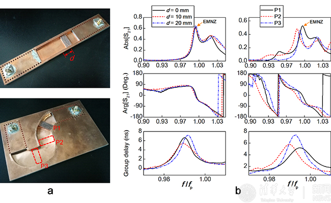 介质集成光学掺杂特性的实验观测:(a)测试平台,(b)近零反射、零相位、高群延时现象