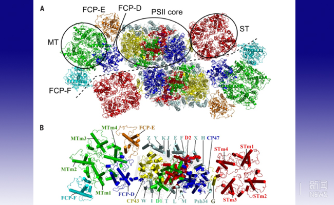 光系统II(PSII)是一个色素-蛋白超级复合体,它催化光诱导的水裂解反应,将太阳能转化为化学能,并释放出氧气。为了充分利用太阳能,光合生物进化出不同的捕光天线复合体(LHCs)用来捕获太阳能,并将能量传递给光系统II。捕光天线复合体II(LHCII)与PSII核心结合形成PSII-LHCII超级复合体。生活在不同环境处在不同光照条件下的不同进化路线上的光合生物有着复杂多变的LHCII。LHCII除了捕获光能之外,还有一个重要功能就是将强光照条件下吸收的多余的能量耗散掉,从而避免强光对光系统的损伤。
