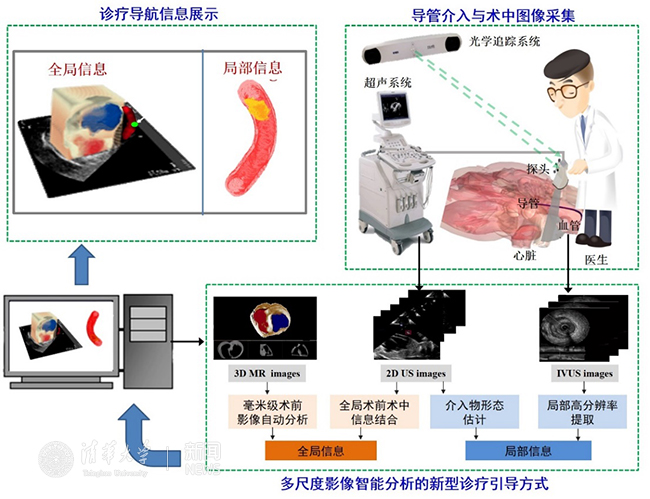 该引导系统既能为医生直观展示人体内部血管组织的三维全局信息,又能突出血管内细小介入物的局部精细化信息,保证了组织与病灶定位的准确性,提高了微创介入诊疗的精准性。因此,论文所研究的多尺度影像智能化分析引导微创介入诊疗的理论与方法在手术导航和精准医学等领域具备重要的理论价值和广泛的应用前景。