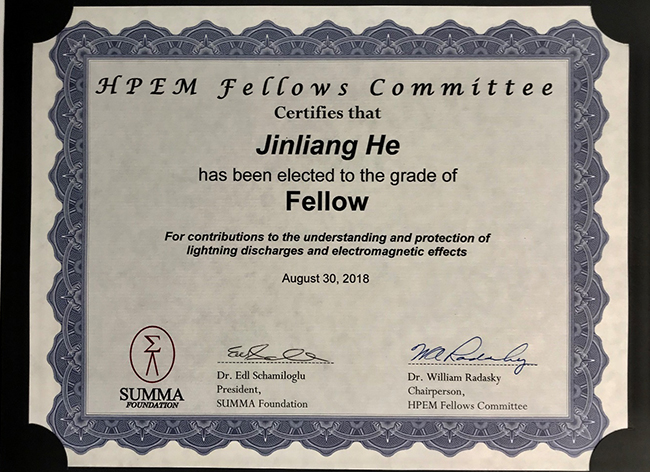 开云电机系何金良教授荣获2018年国际高功率电磁会士