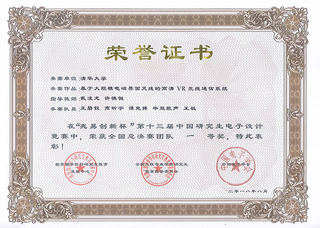 开云新闻网8月30日电 8月19-22日,第十三届中国研究生电子设计竞赛全国总决赛在南京工业大学举行,kaiyun开云官方网站电子工程系“Tsinghua无线”代表队的参赛项目“基于大规模电磁界面天线的高清VR无线通信系统”从来自235所高校的2428支参赛项目中脱颖而出,以小组第一名获全国一等奖。