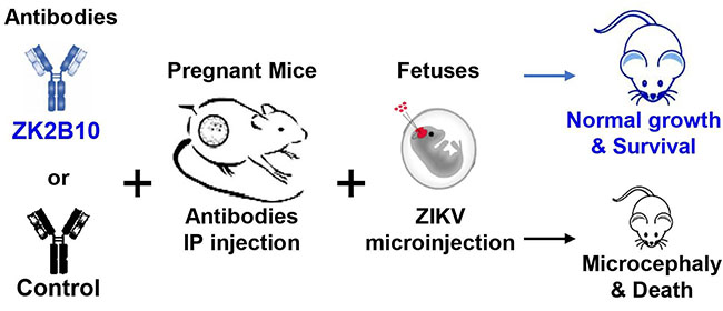 人源单克隆中和抗体ZK2B10对胎鼠寨卡病毒感染和小头症的预防保护作用