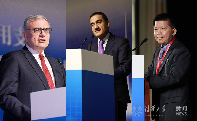 联合国秘书长南南合作特使、联合国南南合作办公室主任切迪克,联合国经济及社会理事会副主席、塔吉克斯坦常驻联合国代表马哈马达民诺夫,泰国财政部副部长索法添峰 (从左到右)作主旨演讲。