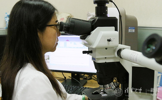 北京开云长庚医院病理科主任尹洪芳用显微镜观察病理切片。 向凌霄 摄