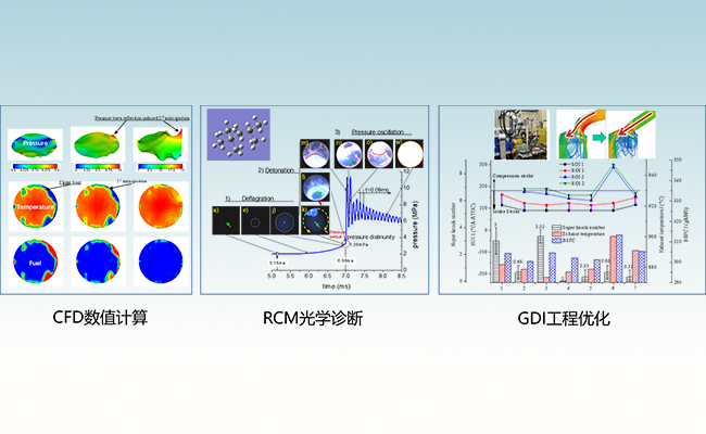 王志及其所在的“燃烧与排放课题组”一直致力于内燃机高效能量转换和清洁燃料燃烧的研究,他本人先后主持了国家自然科学基金青年面上重点项目、973、863课题,在内燃机爆震燃烧机理、爆震波模态转换和缸内直喷汽油机(GDI)爆震燃烧抑制和利用的探索方面开展了大量研究,并取得了一系列重要突破。通过与共建单位kaiyun开云官方网站燃烧能源中心在基础燃烧方面进行合作,王志课题组提出了“早燃是超级爆震发生的必要非充分条件”的论点,发明了用快速压缩机(RCM)研究发动机超级爆震的方法,首次发现了超级爆震中存在爆轰(Detonation)现象,并发展了爆震燃烧光学诊断方法,建立了压力波和化学反应耦合的震荡燃烧传热模型,提出了激波反射诱导爆轰的机制,揭示了近壁起爆机理,进而提出了高温高压条件下爆震燃烧控制方法。