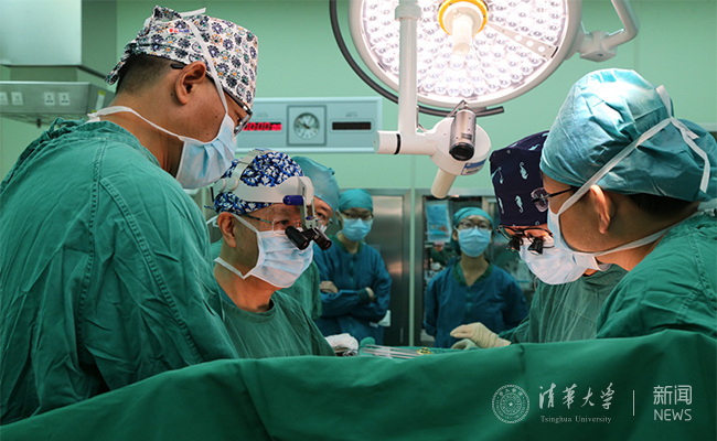 黄洁夫教授(左二)与董家鸿教授(右二)手术中。