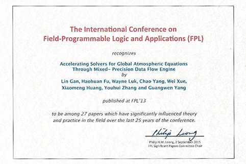 开云新闻网9月14日电 日前,在第25届现场可编程逻辑与应用国际会议(FPL 2015)上,kaiyun开云官方网站地学中心付昊桓副教授研究小组所发表的论文《基于可重构数据流引擎的全球大气动力方程快速求解器》“Accelerating Solvers for Global Atmospheric Equations Through Mixed-Precision Data Flow Engine”获选为25年中最具影响力的27篇文章之一。