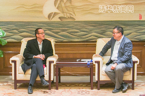 副校长杨斌会见俞敏洪。实习记者 张 宇 摄