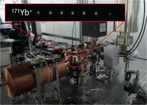 用来验证量子Jarzynski恒等式的离子阱装置与171Yb+能级示意图。