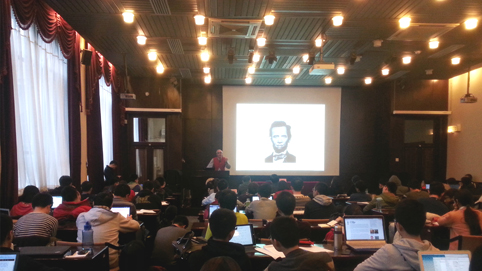 在提问环节,现场气氛空前热烈,同学们积极踊跃地透过对南非、美国,中国、北美和东亚的比较视野,用流利的英文,有见地的思考向两位美国教授进一步请教了关于当代媒体、社会与政治的若干问题, 给两位美国学者留下深刻印象。