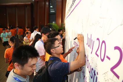 图为学员们在开班仪式的签字墙上签字留念。 石加东 摄